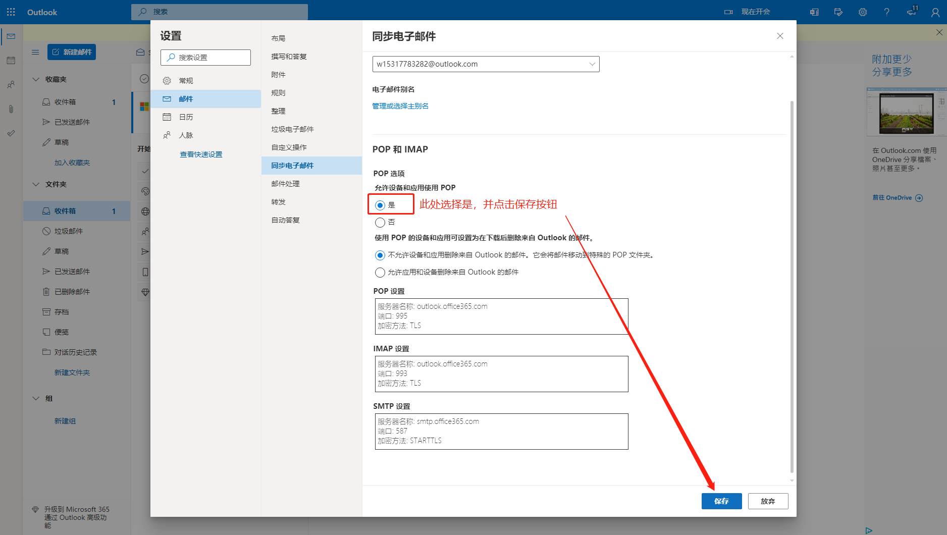 在设置窗口下,选择左侧 【邮件】-【同步电子邮件】- 【POP 和 IMAP】