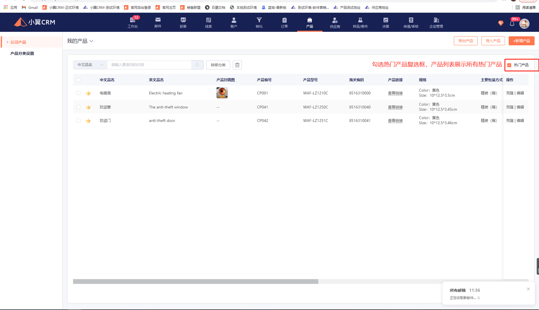 我的产品界面-勾选【热门产品】,我的产品列表展示所有热门产品
